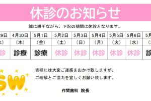 - ゴールデンウイーク休診日のお知らせ